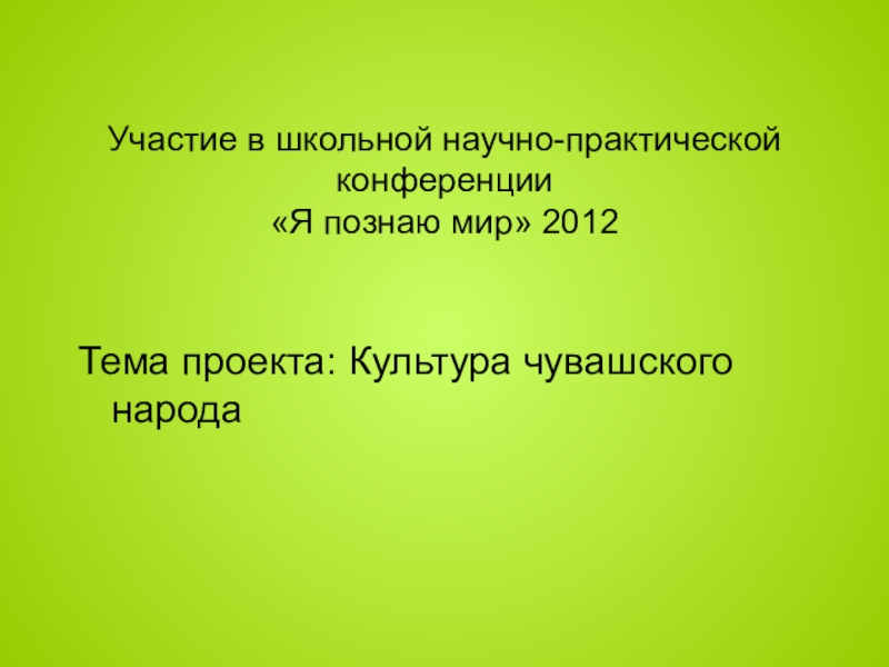 Участие в школьной научно-практической конференции  «Я познаю мир» 2012Тема проекта: Культура чувашского народа