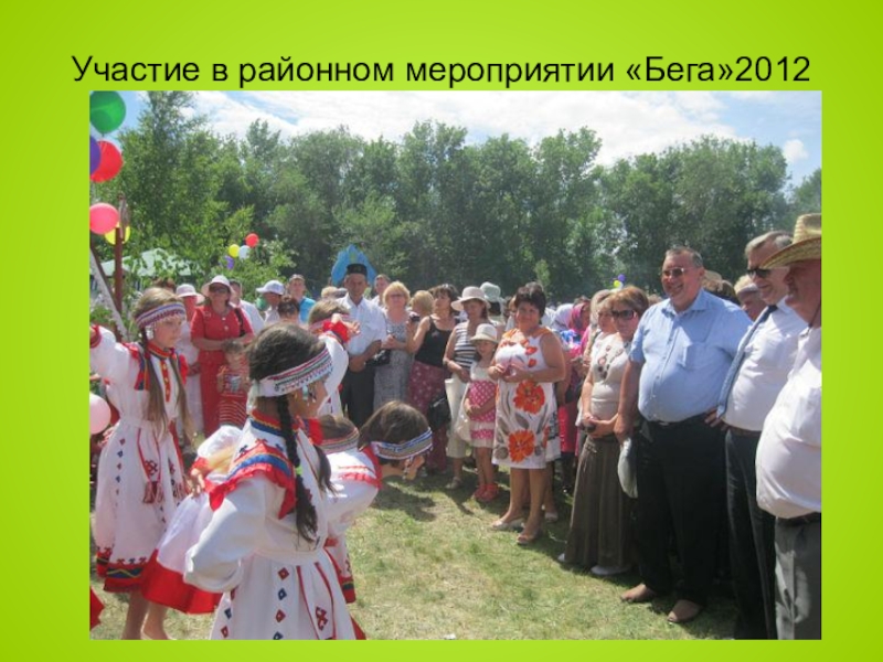 Слайд 28Участие в районном мероприятии «Бега»2012