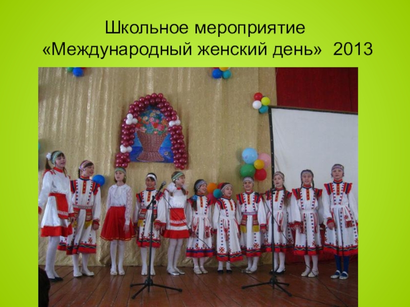 Слайд 12Школьное мероприятие «Международный женский день» 2013