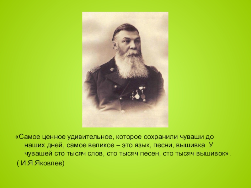 «Самое ценное удивительное, которое сохранили чуваши до наших дней, самое великое – это язык, песни, вышивка У