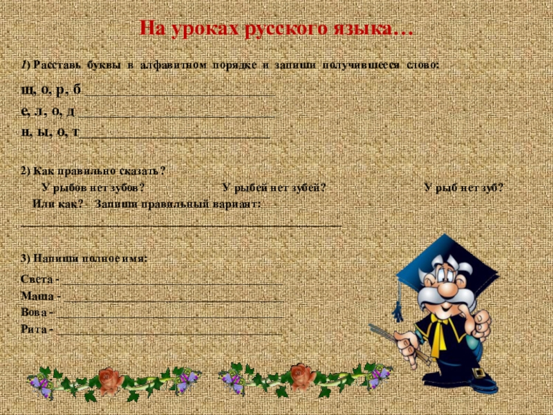 Это сайт презентаций, где можно хранить и обмениваться своими презентациями, докладами, проектами, шаблонами в формате PowerPoint с другими пользователями. Мы помогаем школьникам, студентам, учителям, преподавателям хранить и обмениваться учебными материалами.
