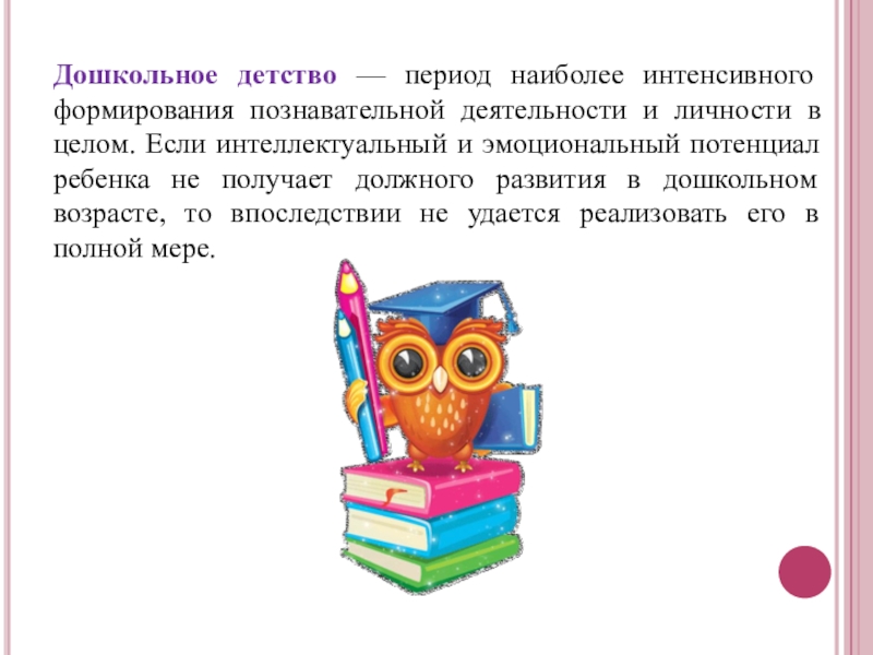 Слайд 2Дошкольное детство — период наиболее интенсивного формирования познавательной деятельности и личности