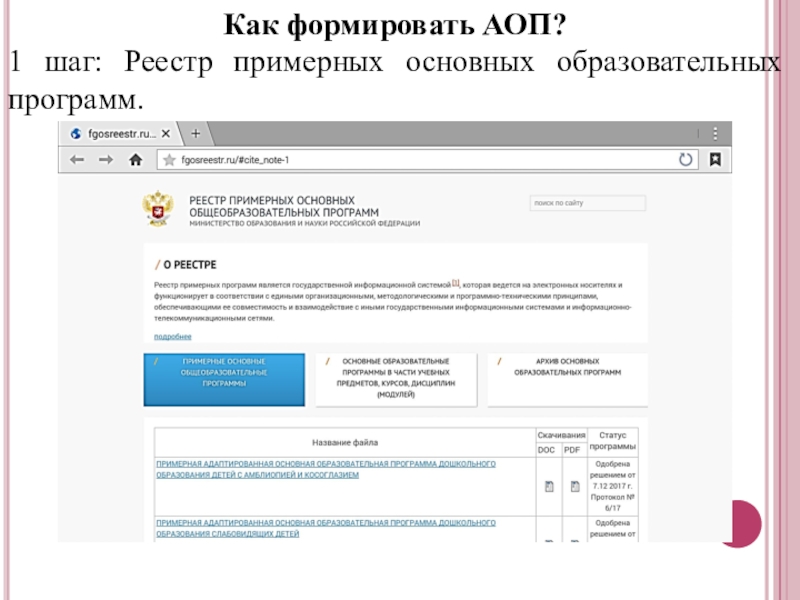 Слайд 1Разработка АОП в ДОО на основе Федеральных примерных АООП ДО