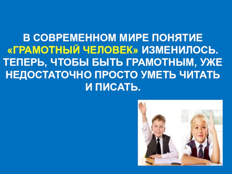 Слайд 2В СОВРЕМЕННОМ МИРЕ ПОНЯТИЕ «ГРАМОТНЫЙ ЧЕЛОВЕК» ИЗМЕНИЛОСЬ. ТЕПЕРЬ, ЧТОБЫ БЫТЬ ГРАМОТНЫМ,