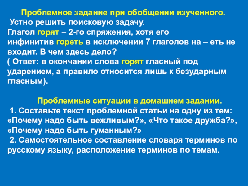 Слайд 17 Проблемное задание при обобщении изученного.