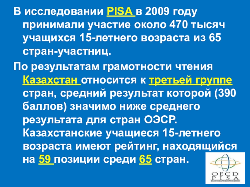 Слайд 8В исследовании PISA в 2009 году принимали участие около 470 тысяч