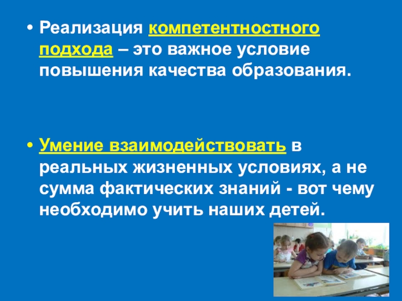 Слайд 5Реализация компетентностного подхода – это важное условие повышения качества образования.