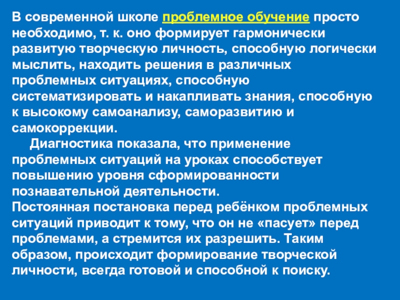 Слайд 18В современной школе проблемное обучение просто необходимо, т. к. оно формирует