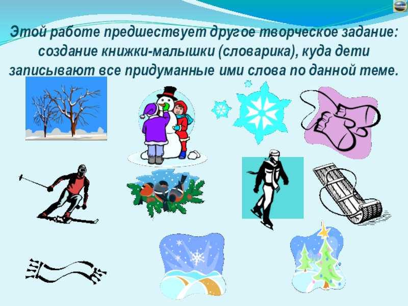 Слайд 46Этой работе предшествует другое творческое задание: создание книжки-малышки (словарика), куда дети