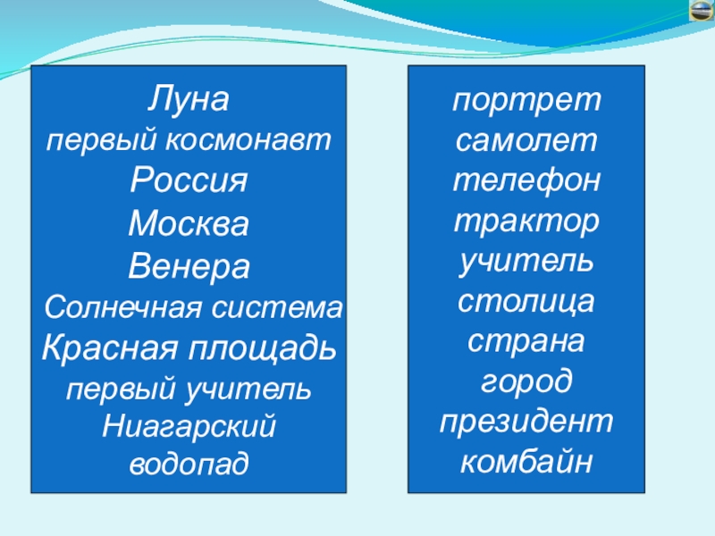 П*ртрет, Луна, с*м*лет, первый к*см*навт, т*л*фон, тракт*р, Рос*ия, учит*ль, ст*лица, М*сква, стр*на, В*нера, гор*д, Солнечная система, пр*зидент, комбайн. Красная площадь, первый учитель, Ниагарский в*д*пад.