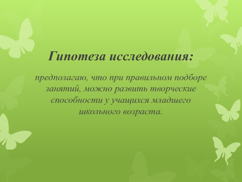 Гипотеза исследования:      предполагаю, что при правильном подборе занятий, можно развить творческие способности