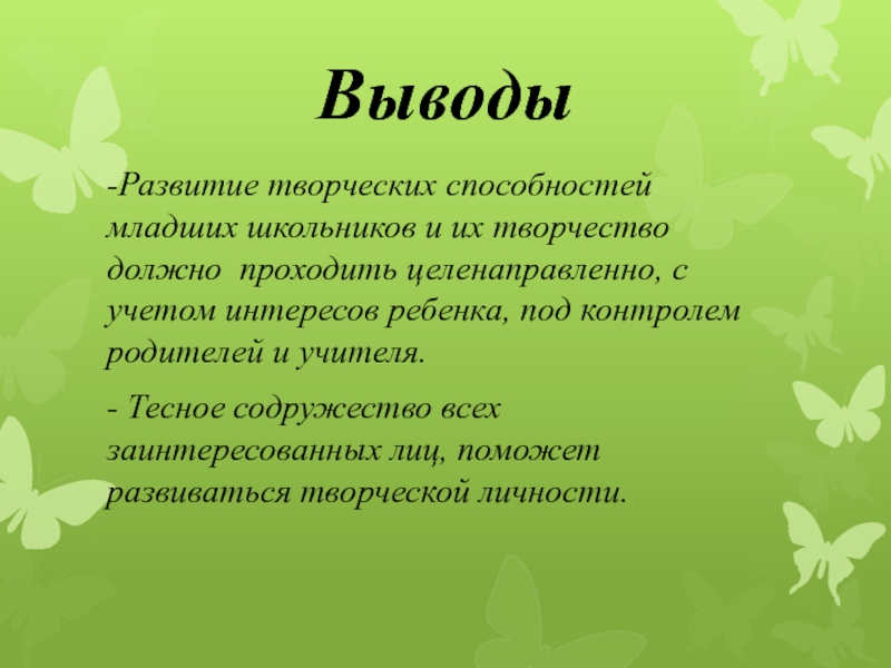 -Развитие творческих способностей младших школьников и их творчество должно проходить