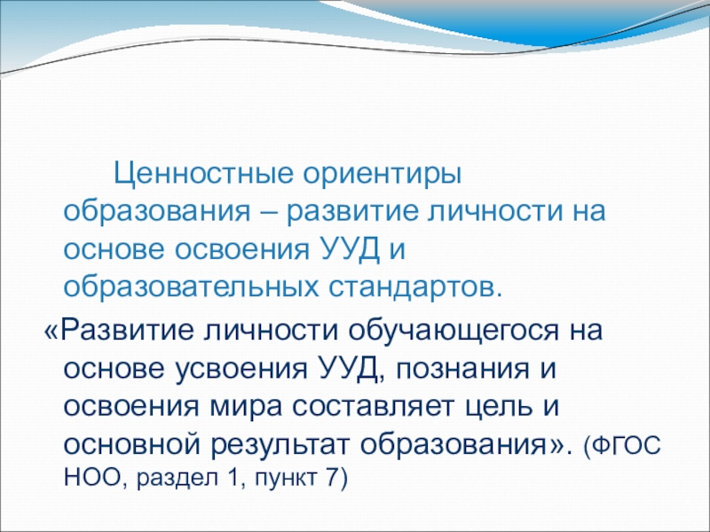 «Развитие личности обучающегося на основе усвоения УУД, познания и освоения мира составляет цель и основной результат образования». (ФГОС НОО, раздел 1, пункт 7)