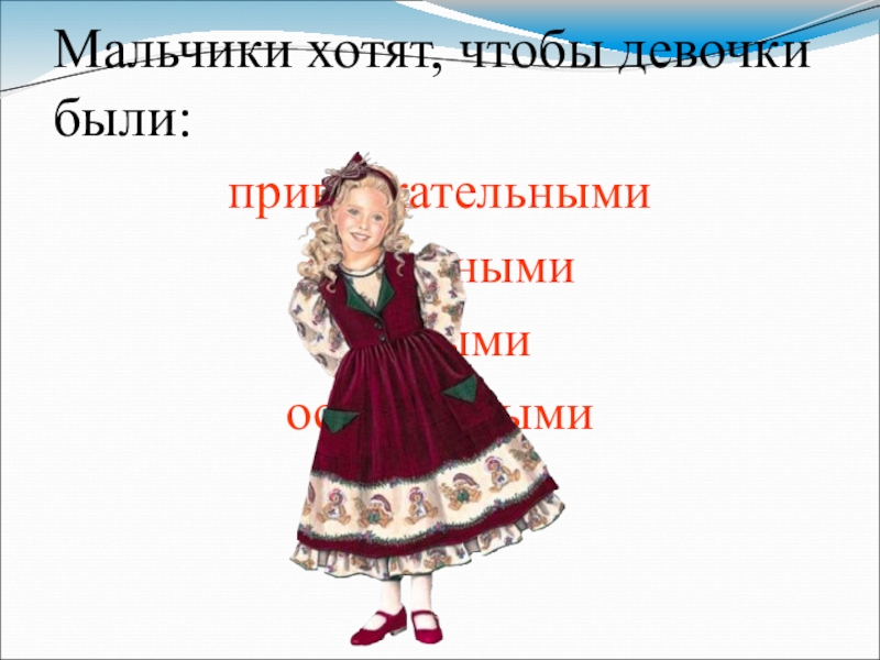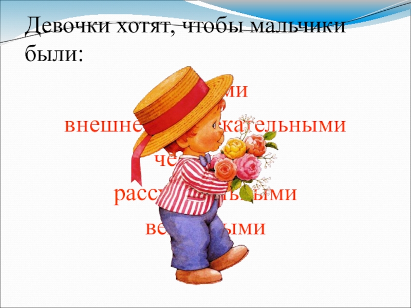 Слайд 28Девочки хотят, чтобы мальчики были: