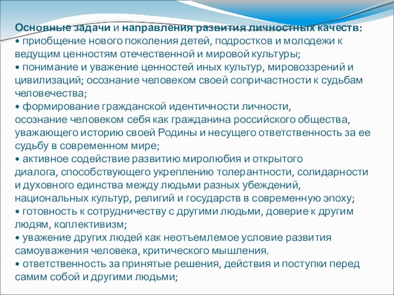 Слайд 3Основные задачи и направления развития личностных качеств: