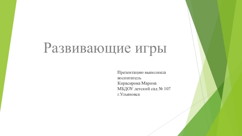 Развивающие игры Презентацию выполнилавоспитатель Кирасирова МаринаМБДОУ детский сад № 107 г.Ульяновск