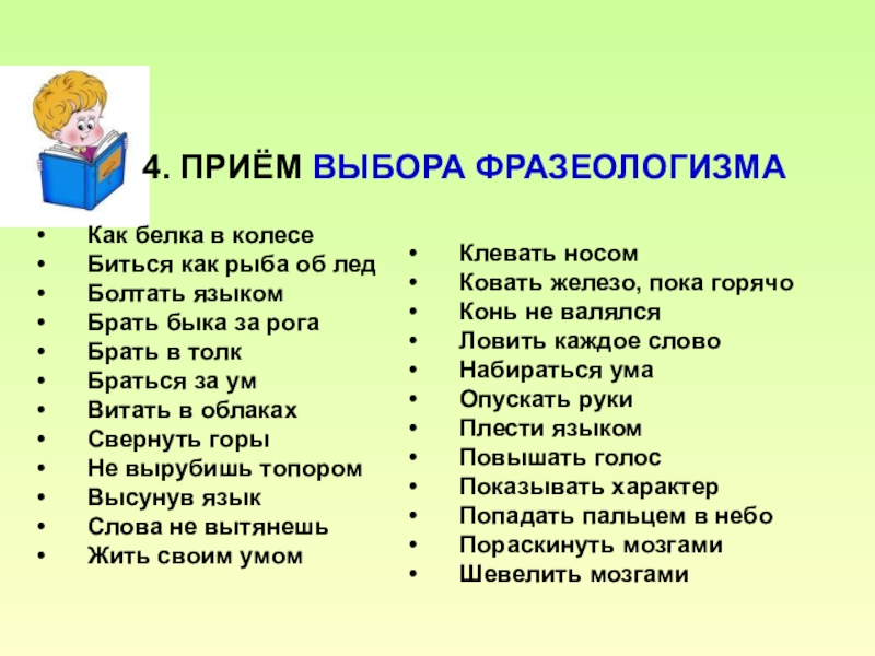 4 ПРИЁМ «выбор фразеологизма»
