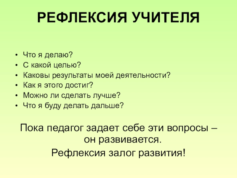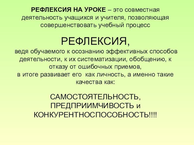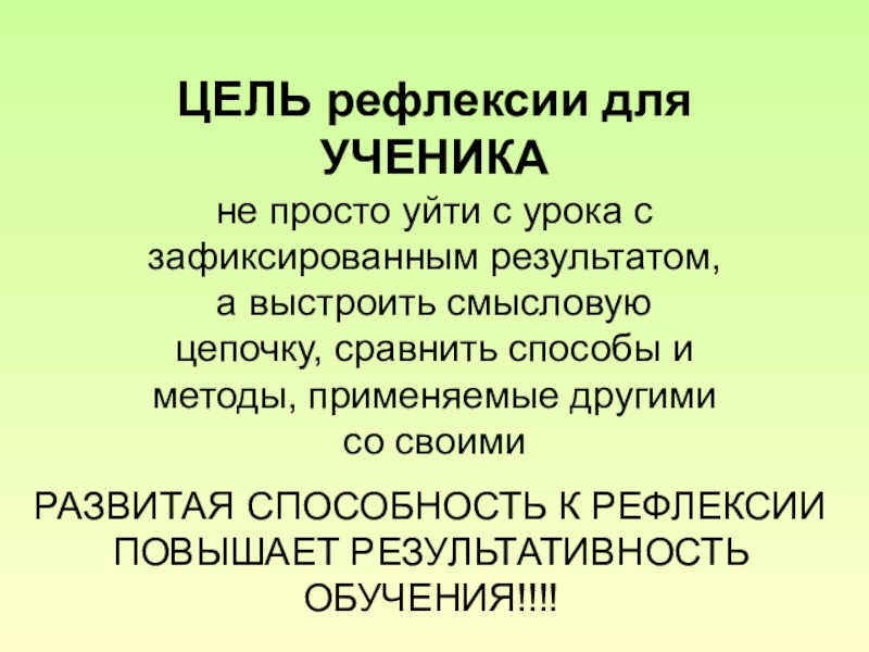РАЗВИТАЯ СПОСОБНОСТЬ К РЕФЛЕКСИИ ПОВЫШАЕТ РЕЗУЛЬТАТИВНОСТЬ