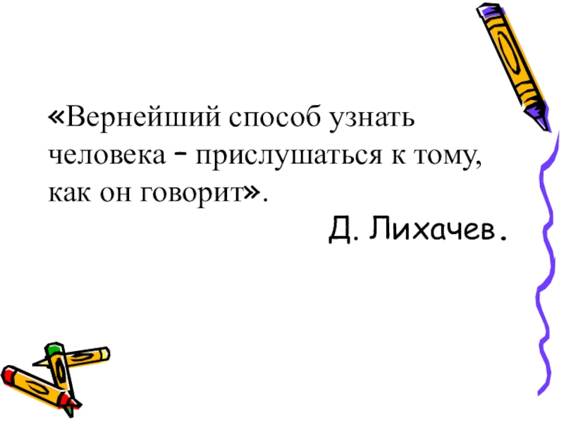 Слайд 7«Вернейший способ узнать человека – прислушаться к тому, как он говорит».