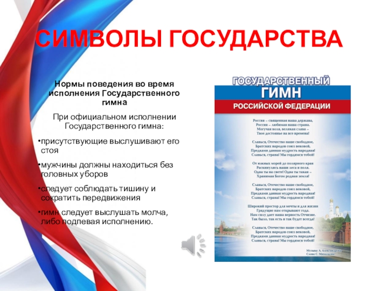 Нормы поведения во время исполнения Государственного гимна