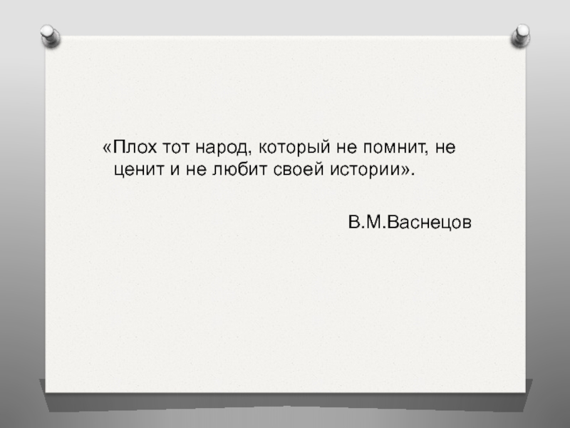 «Плох тот народ, который не помнит, не ценит и не любит своей истории».В.М.Васнецов