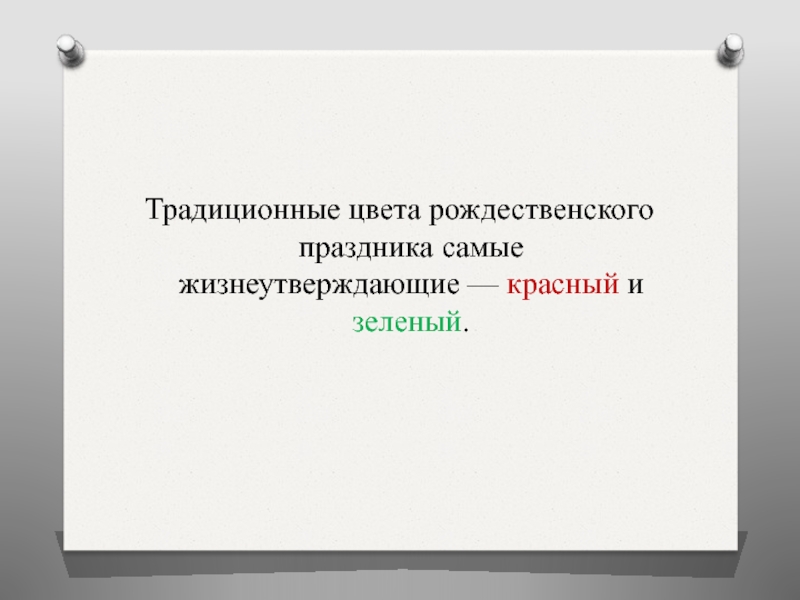 Слайд 11Традиционные цвета рождественского праздника самые жизнеутверждающие — красный и зеленый.