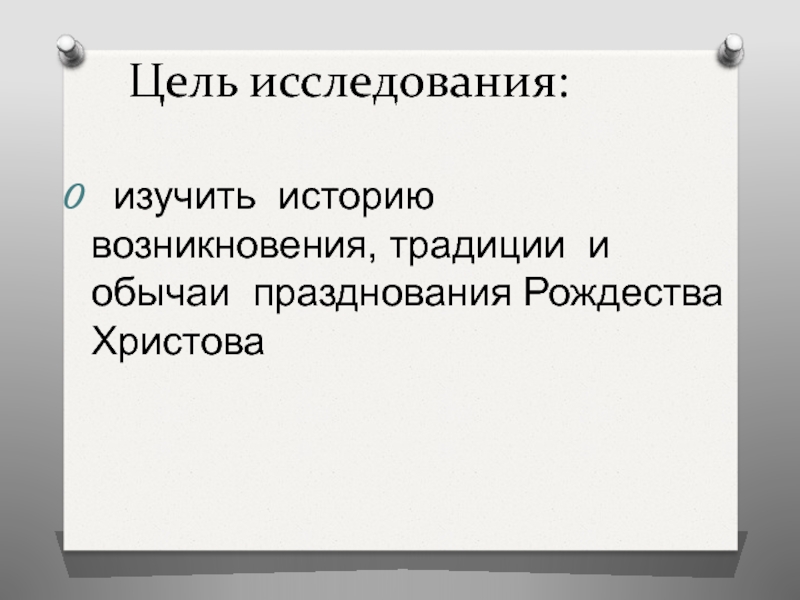Цель исследования: изучить историю возникновения, традиции и обычаи празднования Рождества Христова