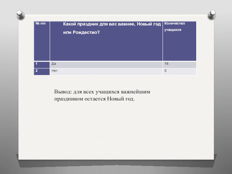 Слайд 39Вывод: для всех учащихся важнейшим праздником остается Новый год.