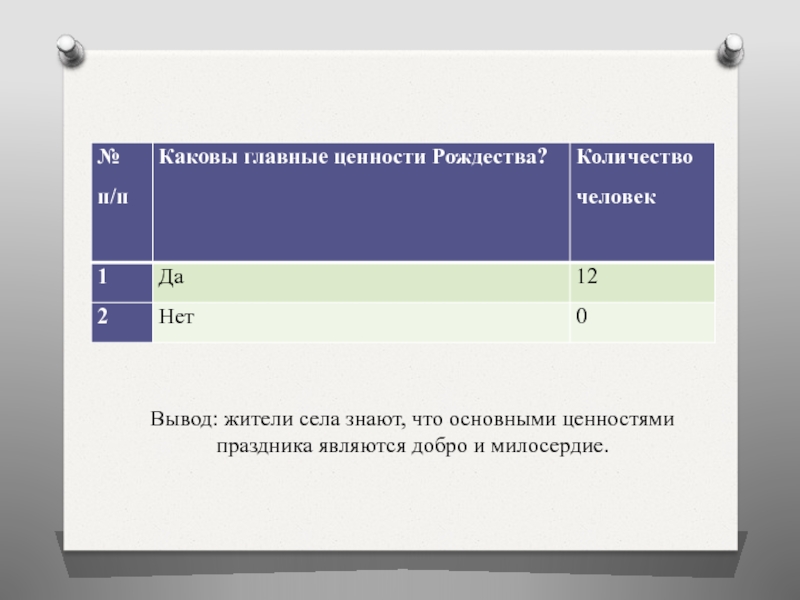 Слайд 42Вывод: жители села знают, что основными ценностями праздника являются добро и