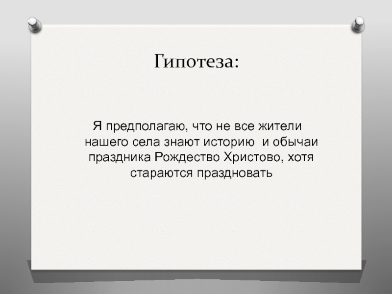 Гипотеза: Я предполагаю, что не все жители нашего села знают историю и обычаи праздника Рождество Христово, хотя