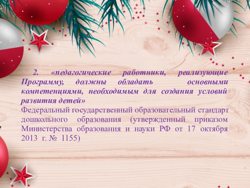 Слайд 6 2. «педагогические работники, реализующие Программу, должны обладать основными компетенциями,