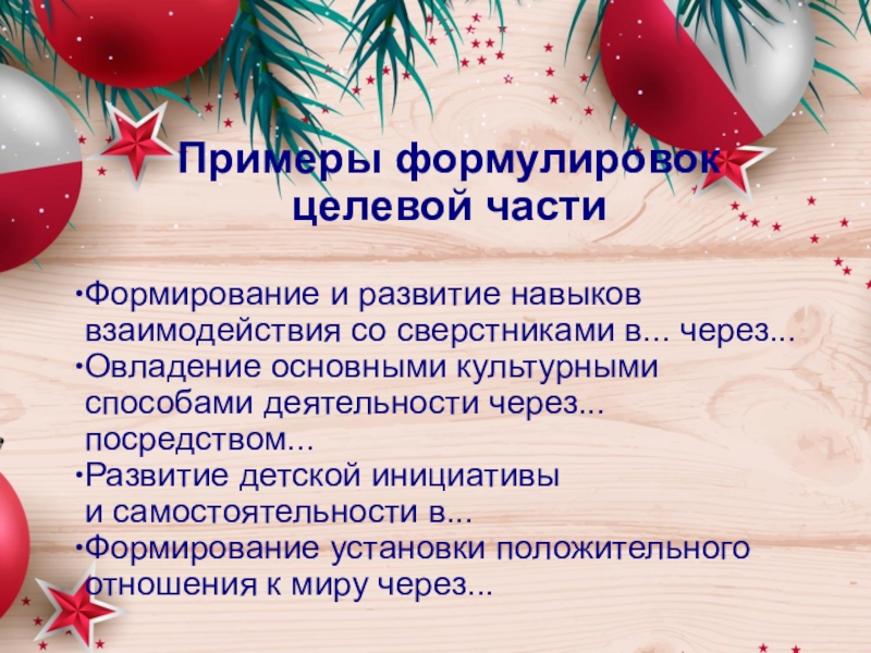 Целевая часть методической темы формулируется на основе целевых ориентиров ФГОС ДО и целей образовательной программы ДОО.