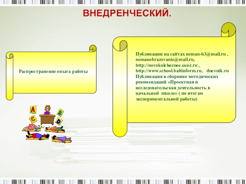 Внедрение опыта работы.