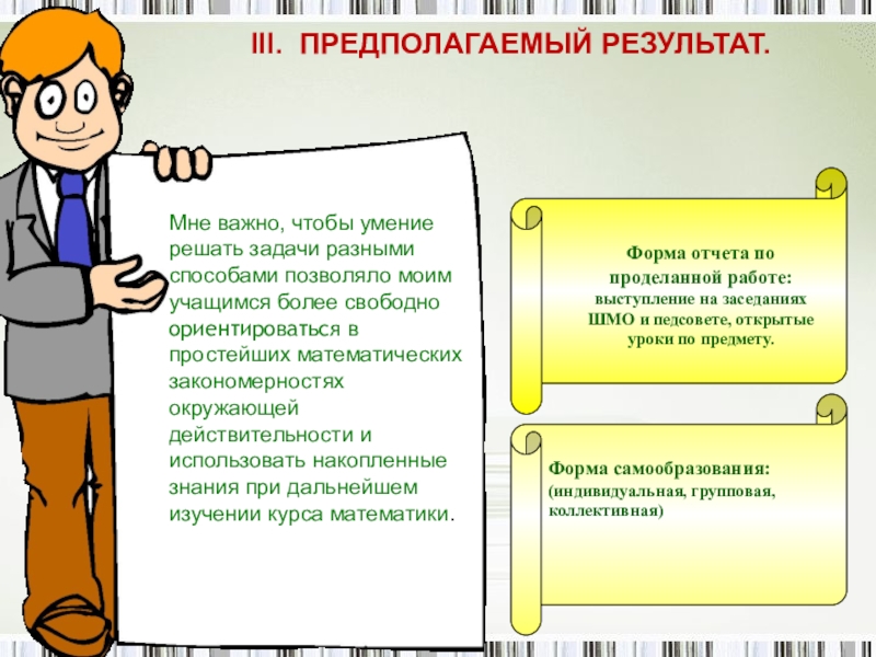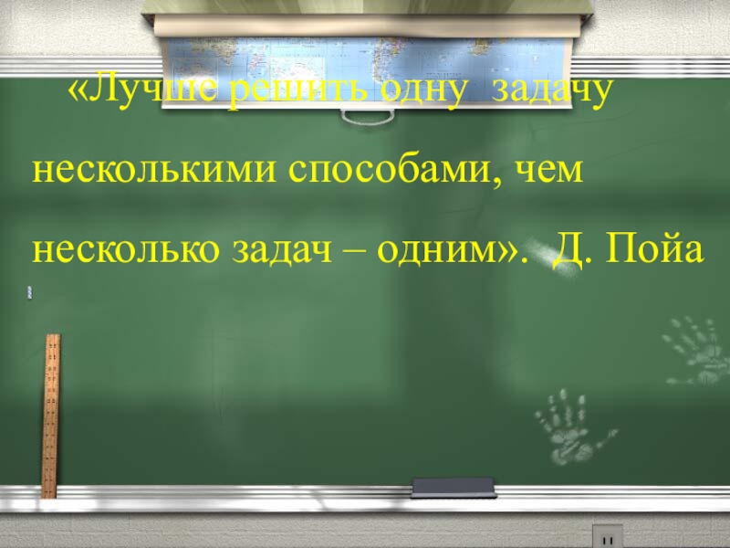 Мне важно, чтобы умение решать задачи разными способами позволяло моим учащимся более свободно ориентироваться в простейших математических закономерностях окружающей действительности и использовать накопленные знания при дальнейшем изучении курса математики.