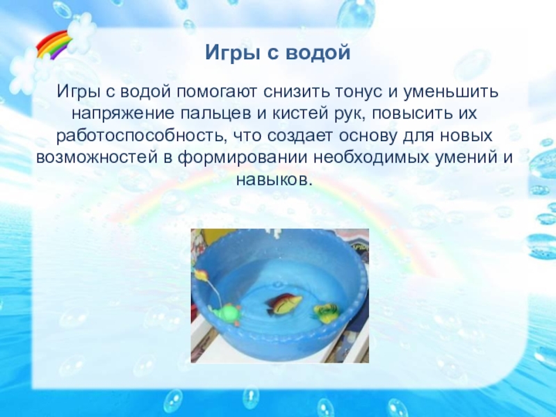 Игры с водой помогают снизить тонус и уменьшить напряжение