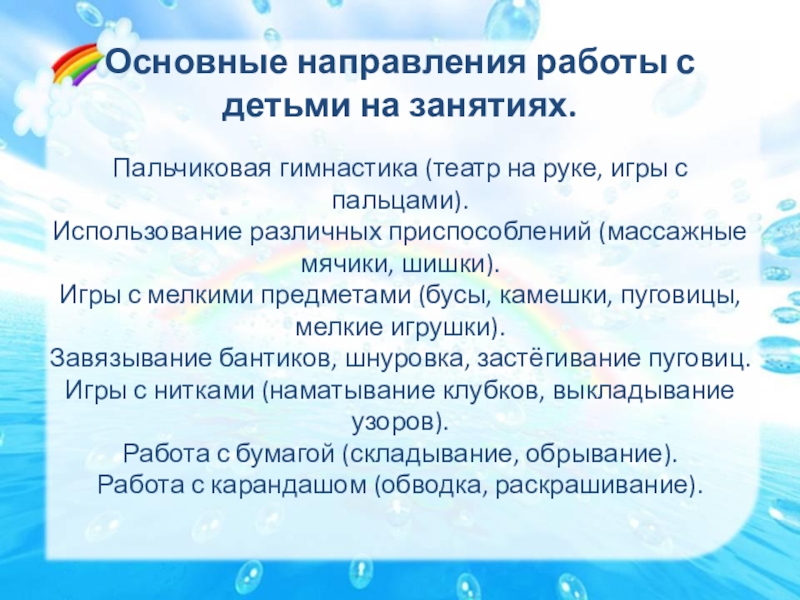 пальцев и кистей рук, повысить их работоспособность, что создает основу для новых возможностей в формировании необходимых умений и навыков.