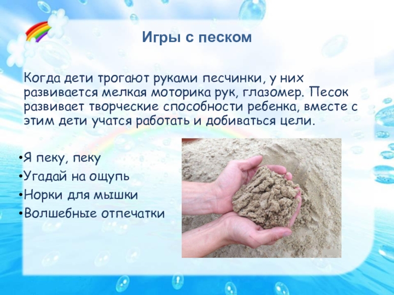 Когда дети трогают руками песчинки, у них развивается мелкая