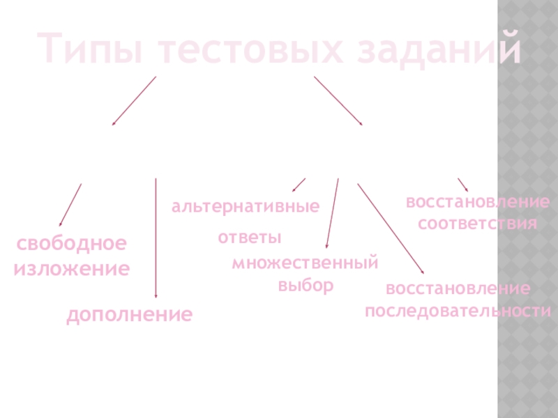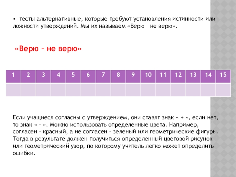 Слайд 12• тесты альтернативные, которые требуют установления истинности или ложности утверждений. Мы