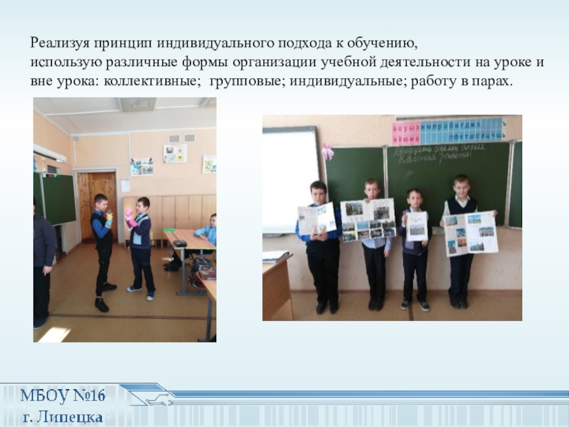 Слайд 15Реализуя принцип индивидуального подхода к обучению, использую различные формы организации учебной деятельности