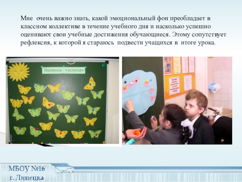 в течение учебного дня и насколько успешно оценивают свои учебные достижения обучающиеся. Этому сопутствует рефлексия, к которой я стараюсь подвести учащихся в итоге урока.