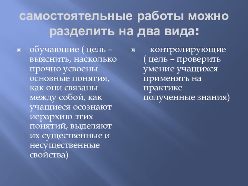 контролирующие ( цель – проверить умение учащихся применять на практике полученные знания)