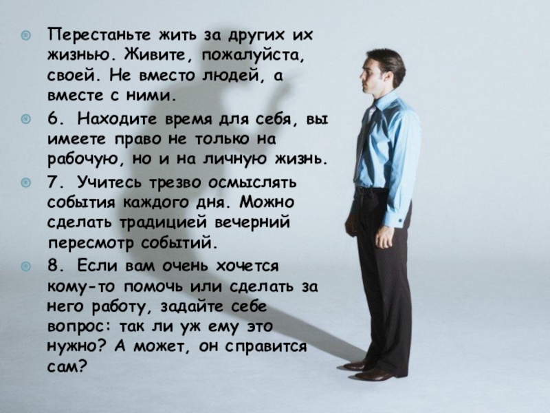 5. Перестаньте жить за других. Живите, пожалуйста, своей жизнью. Не вместо людей, а вместе с ними.