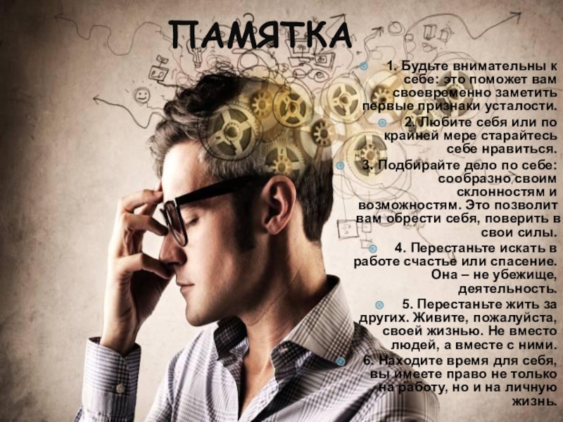 1. Будьте внимательны к себе: это поможет вам своевременно заметить первые