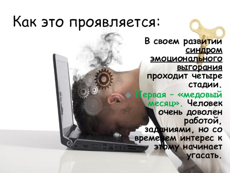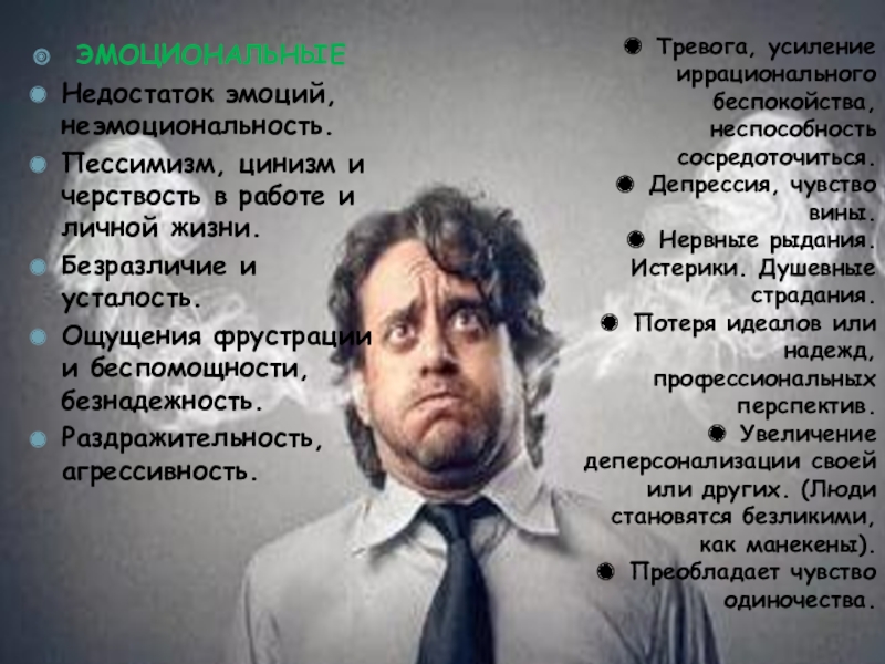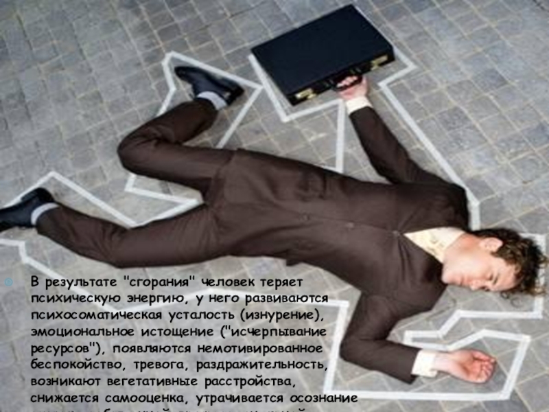 Слайд 18В результате "сгорания" человек теряет психическую энергию, у него развиваются психосоматическая