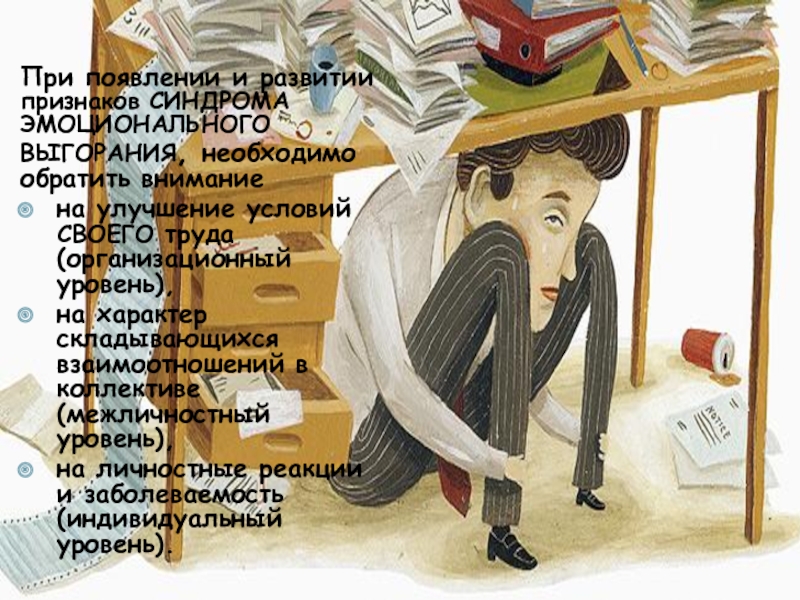 При появлении и развитии признаков СИНДРОМА ЭМОЦИОНАЛЬНОГО ВЫГОРАНИЯ, необходимо обратить внимание