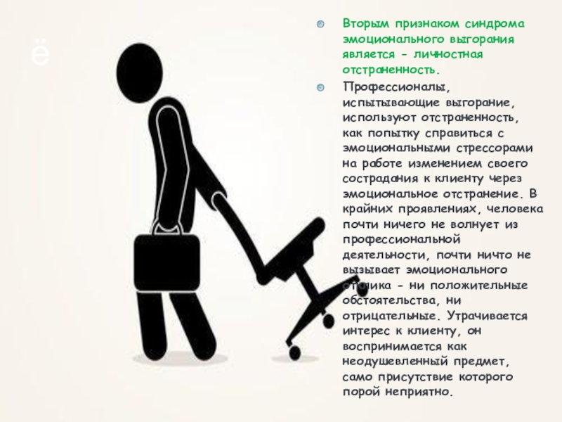 • 2. отстраненность от клиентов (пациентов, учеников) и от работы,