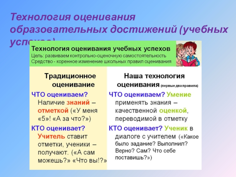 Текущий контроль показывает не столько обученность, сколько старательность ученика, выявляет трудности, с которыми он сталкивается