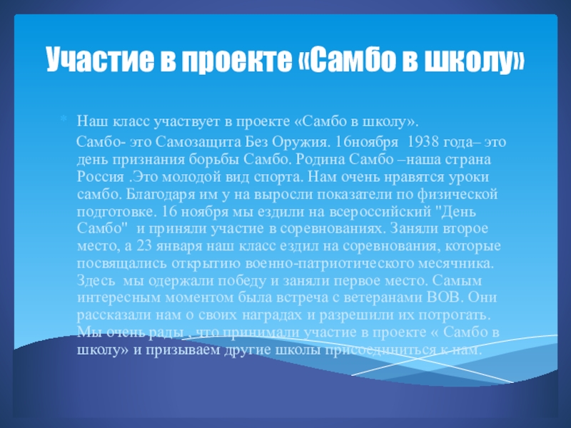 Участие в проекте «Самбо в школу»