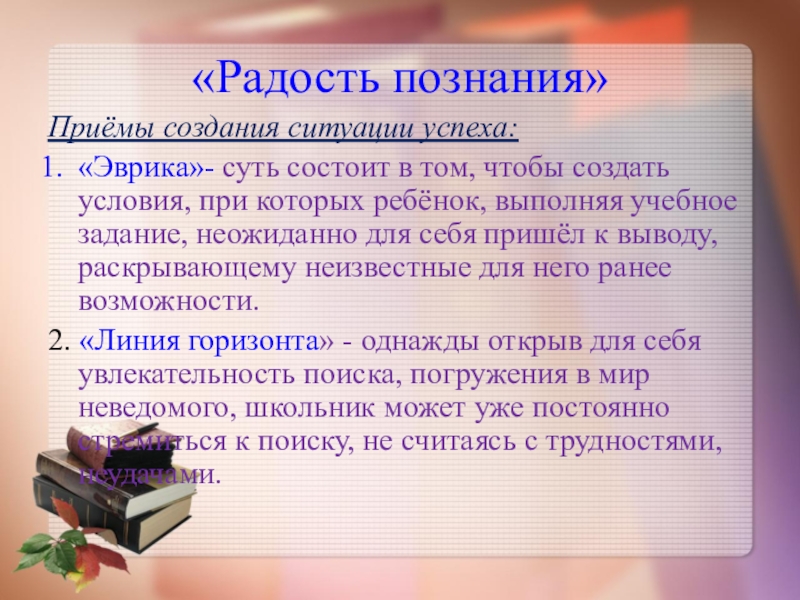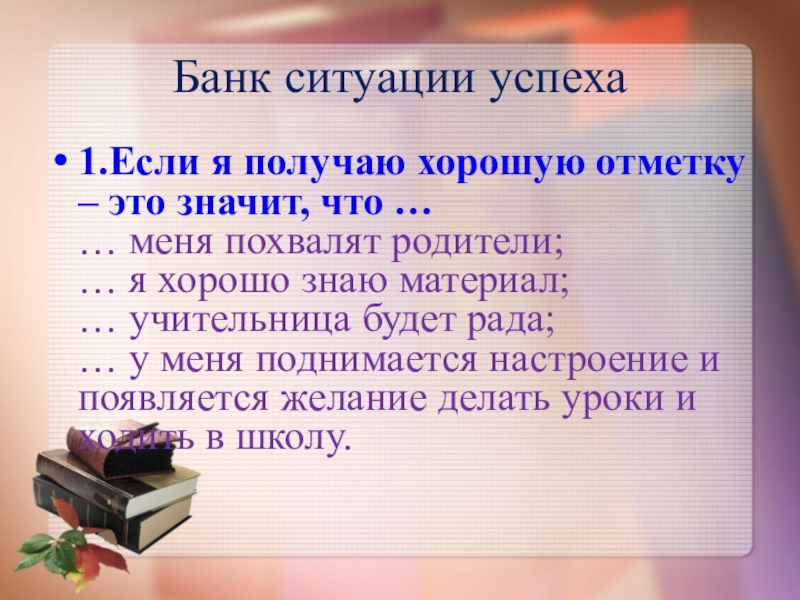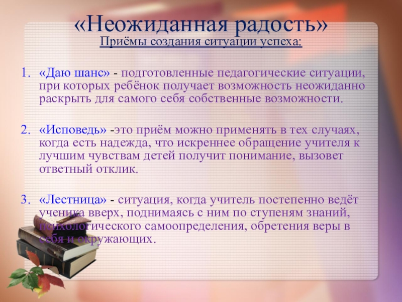 Ситуация успеха – это такое целенаправленное, организованное сочетание условий, при которых создается возможность достичь значительных результатов в деятельности как отдельно взятой личности, так и коллектива в целом.