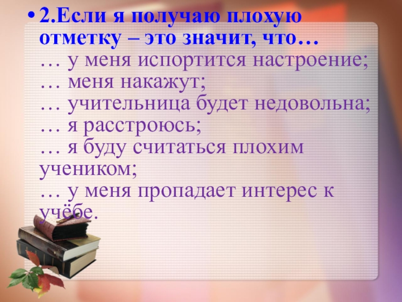 … у меня поднимается настроение и появляется желание делать уроки и ходить в школу.